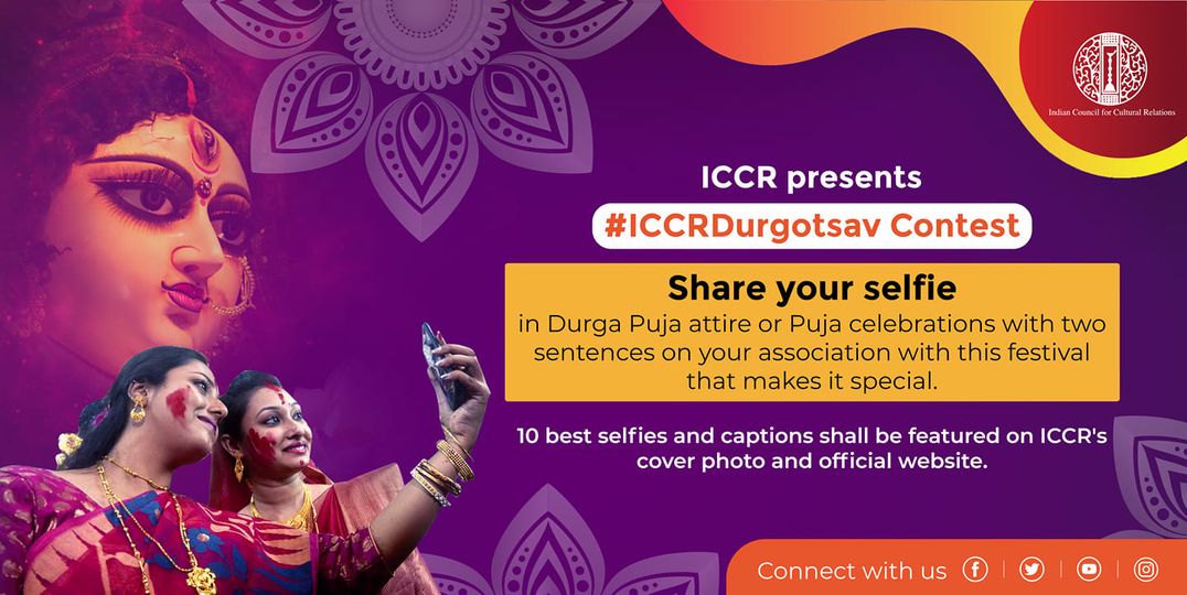 - All participants must share their selfies in Durga Puja attire or Durga Puja celebrations along with two lines on their special association with this festival in the comments section and tag maximum friends to increase their chances of winning. Don't forget to use the hashtag: #ICCRDurgotsav.