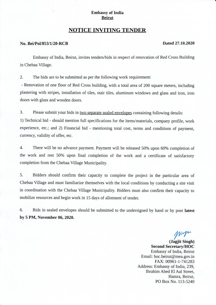 Notice Inviting Tender - Renovation Of Red Cross Building