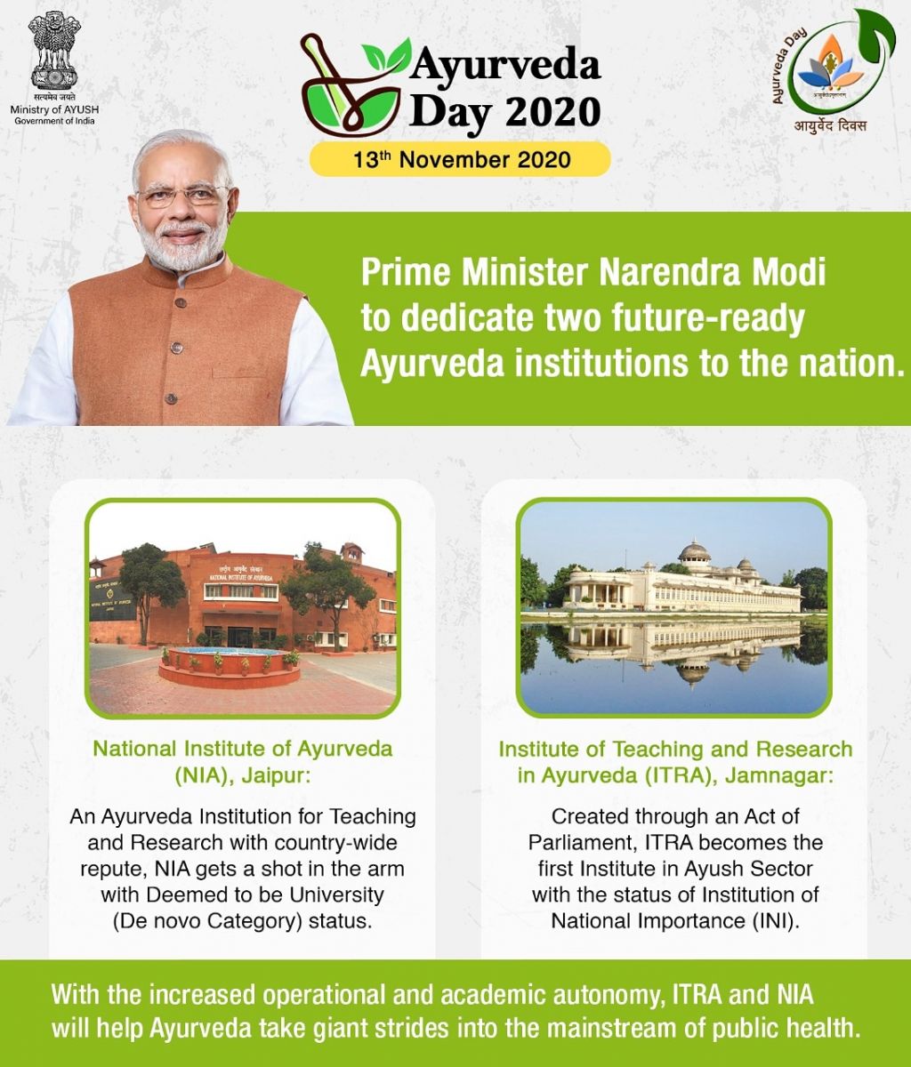 Hon'ble PM To Dedicate Two Future-ready Ayurveda Institutions At Jamnagar And Jaipur To The Nation On November 13 On The Occasion Of The Ayurveda Day.
