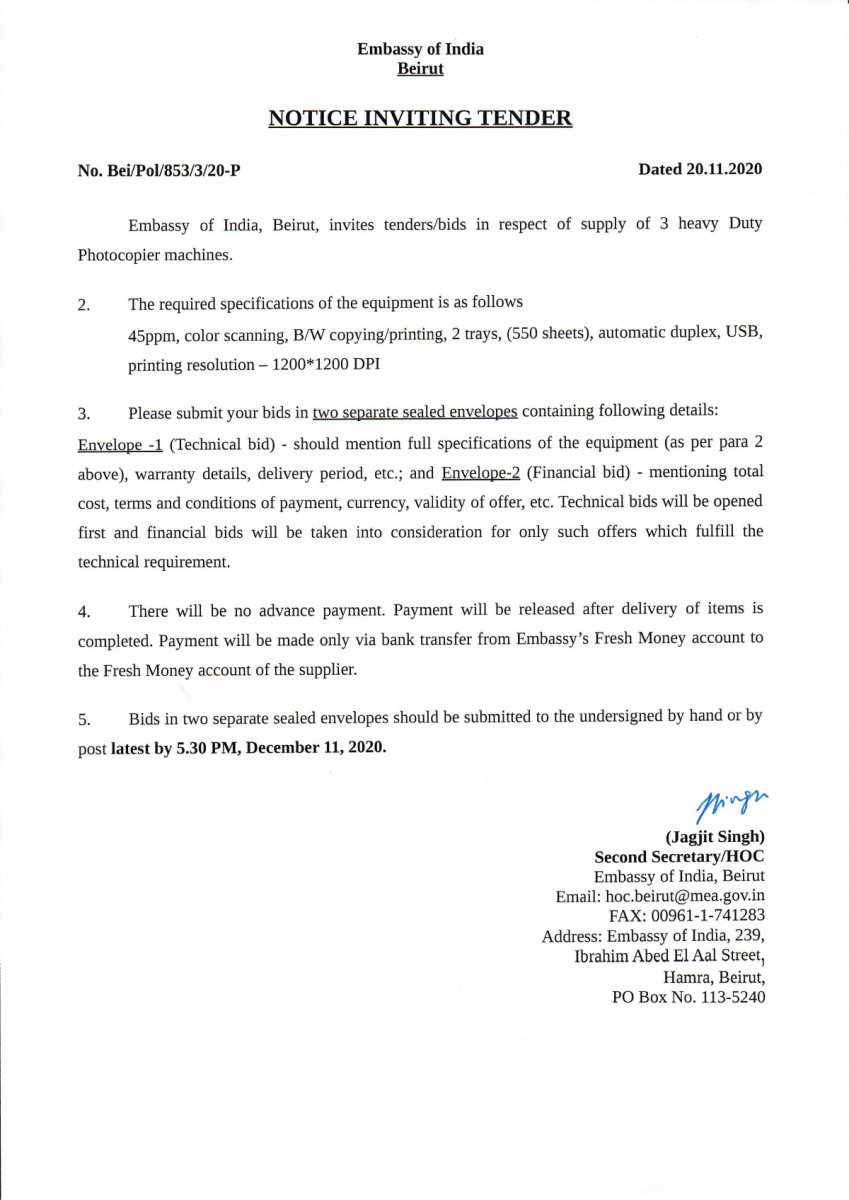 Notice Inviting Tender - Supply Of 3 Heavy Duty Photocopier Machines