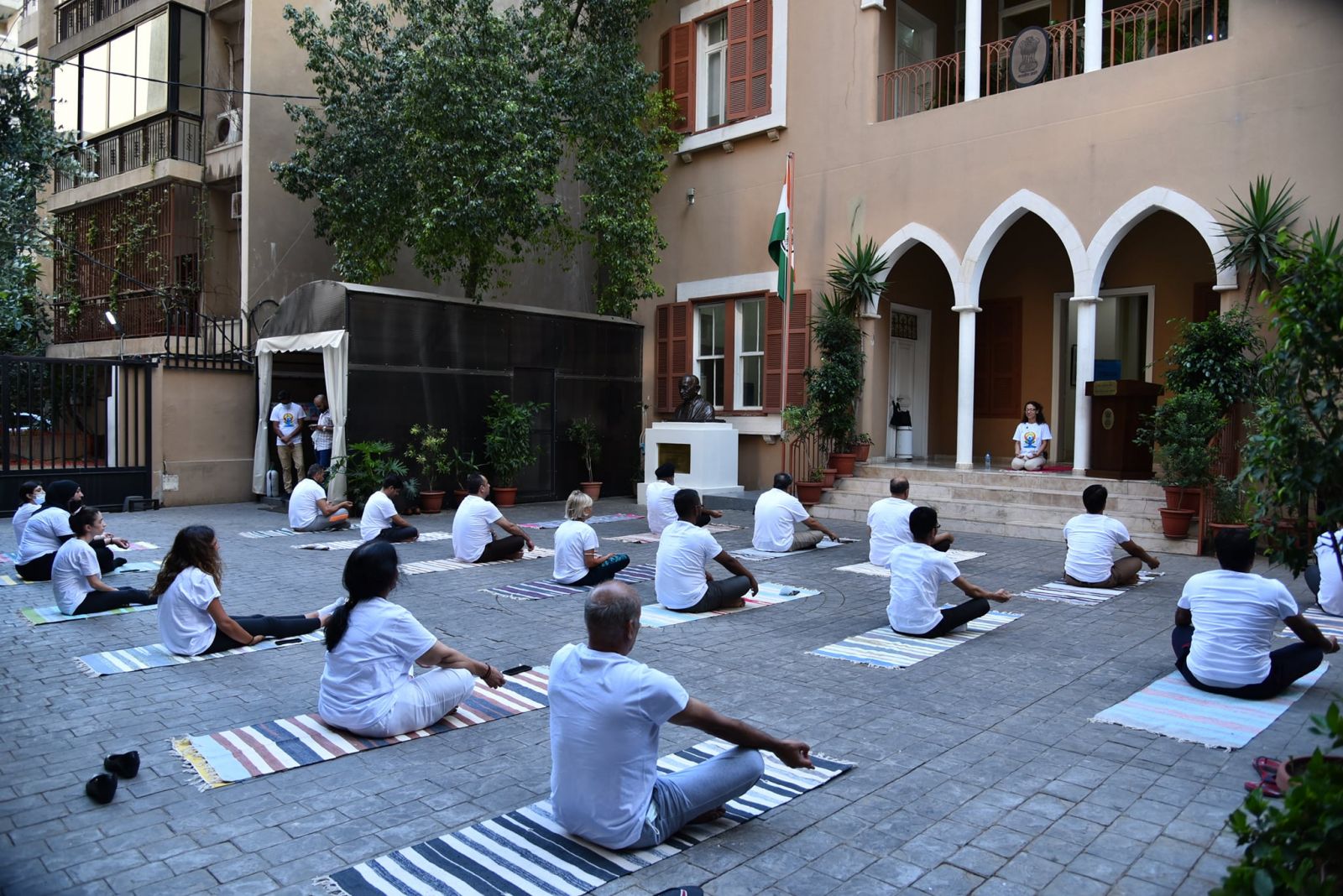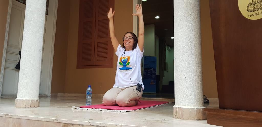 Embassy of India, Beirut in association with Art of Living, Lebanon conducted a special Yoga session in run up to the 7th International Day of Yoga. The special session focused on boosting immunity and respiratory heath in fight against Covid-19 and other respiratory illnesses. Members of the Embassy took part in the special Yoga session which was led by acclaimed Lebanese Yoga instructor Ms Dana Shamseddin from Art of Living, Lebanon.
