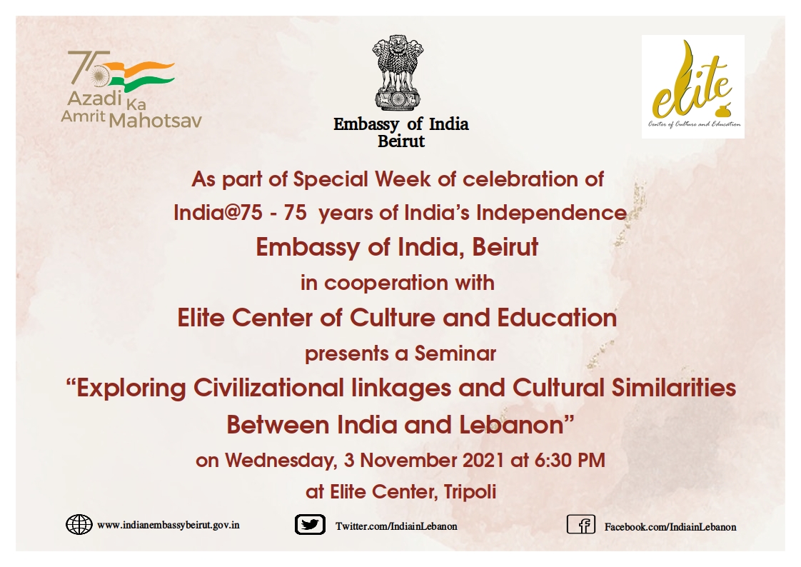 Seminar On Exploring Civilizational Linkages And Cultural Similarities Between India And Lebanon On November 3, 2021