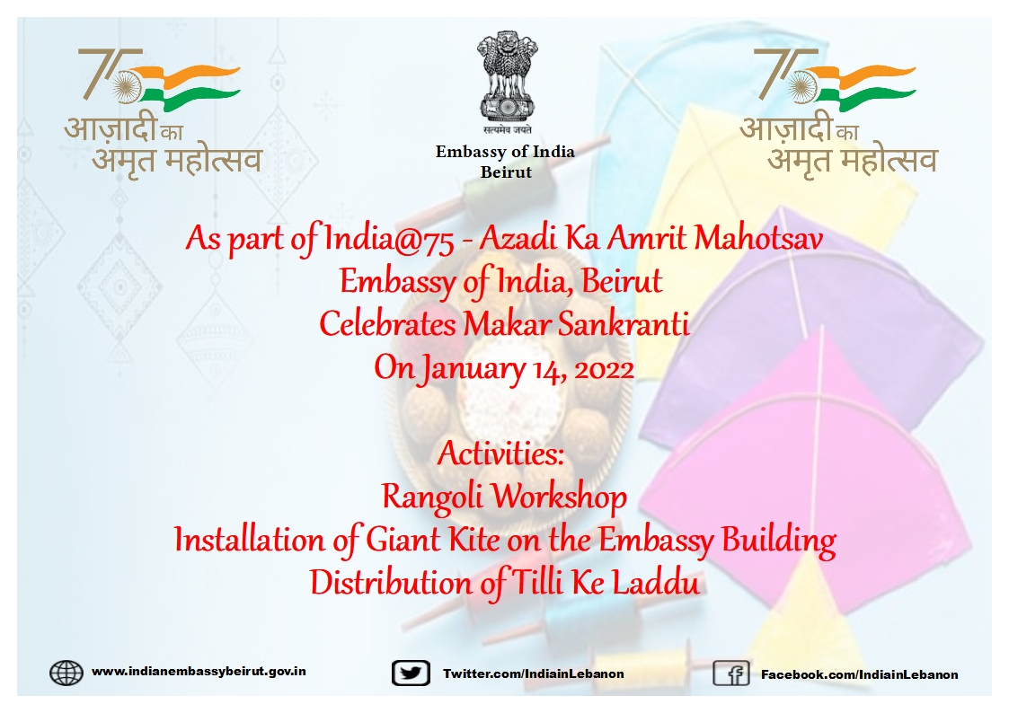 As part of India@75 - Azadi Ka Amrit Mahotsav, Embassy of India, Beirut celebrates Makar Sankranti on January 14, 2022.