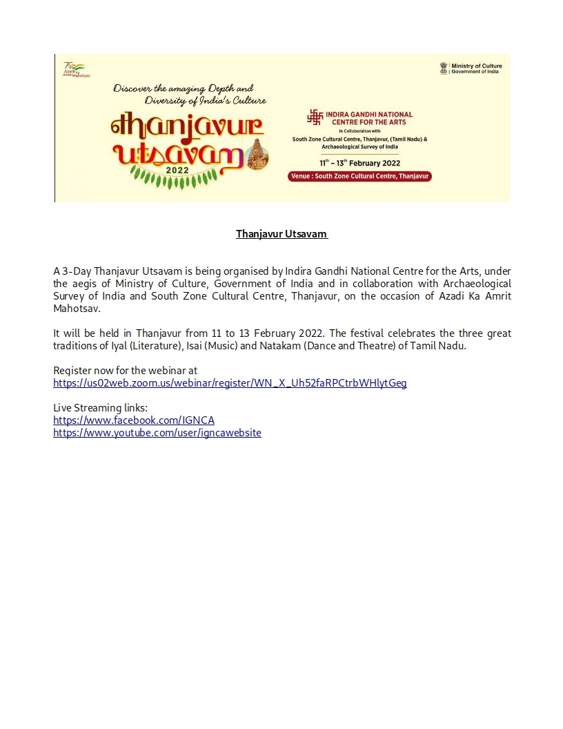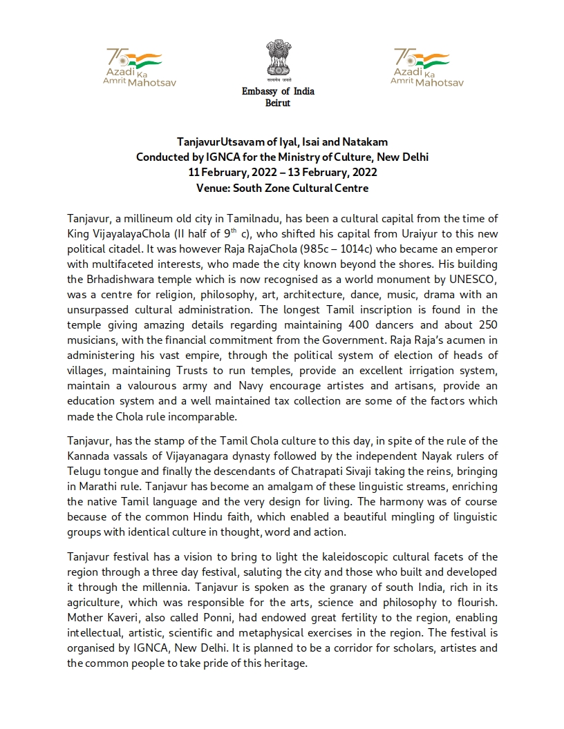 Celebration Of Thanjavur Utsav From 11-13 February 2022