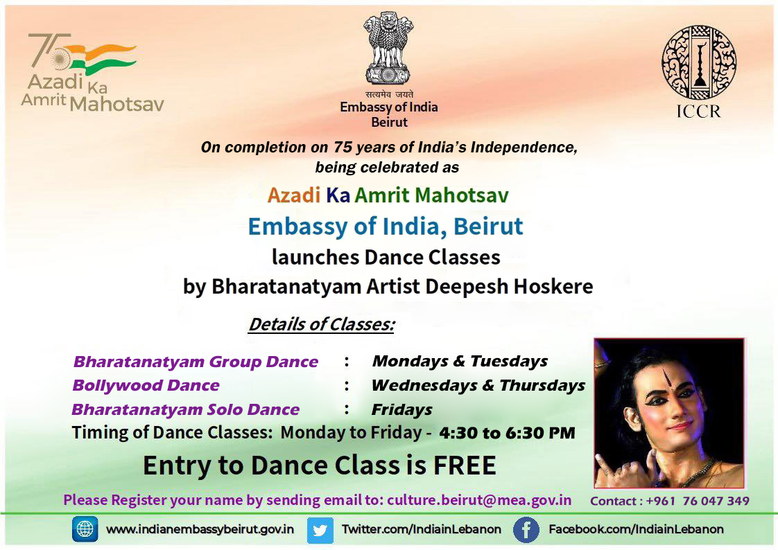 August 24, 2022We are glad to inform you that the Embassy launches the free classes of Indian Classical Dance 'Bharatanatyam' today, August 24, 2022.