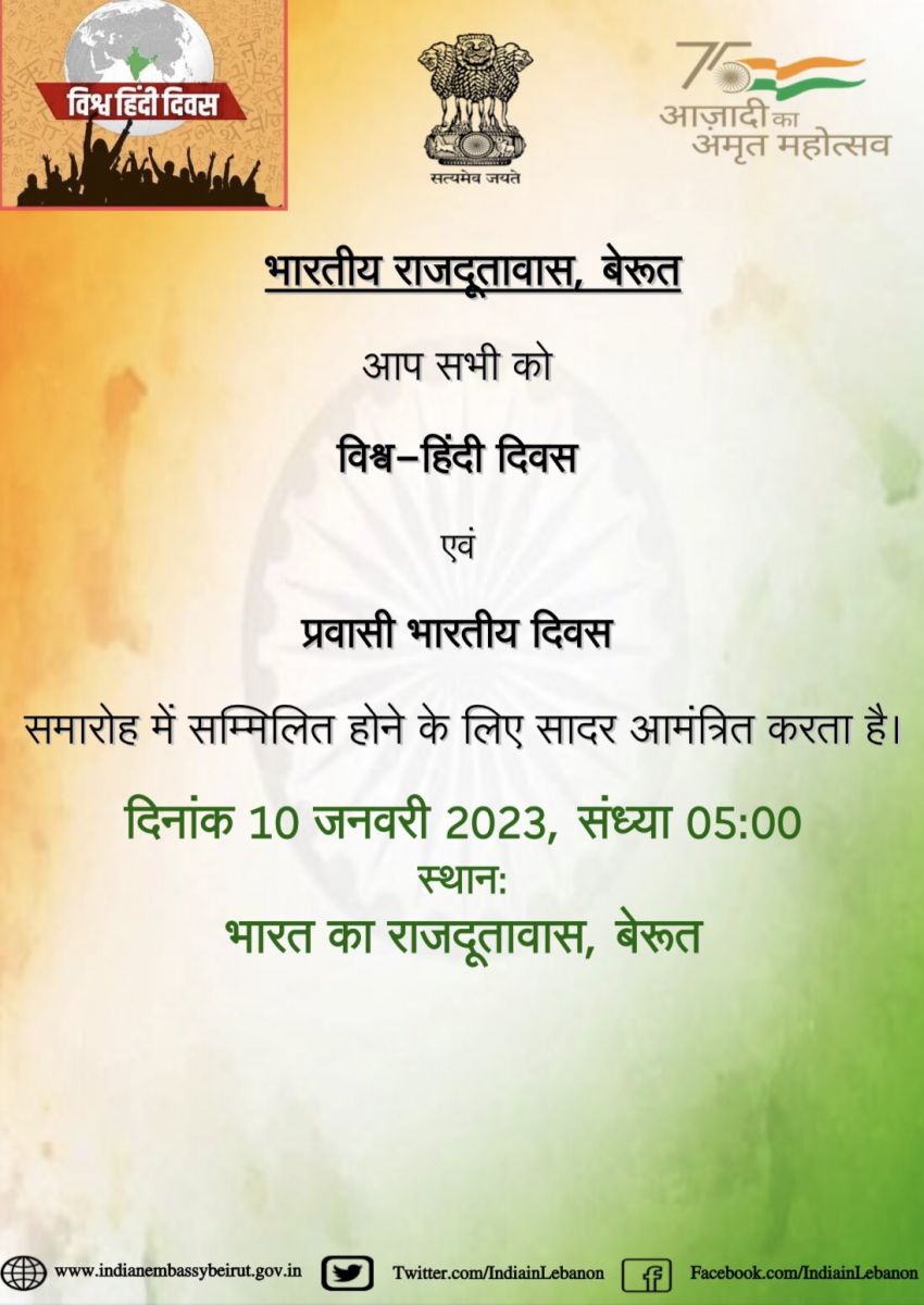 भारतीय समुदाय के सदस्यों, भारतीय प्रेमियों, लेबनानी दोस्तों को 10 जनवरी, 2023 को होने वाले कार्यक्रम में शामिल होने के लिए आमंत्रित किया जाता है।