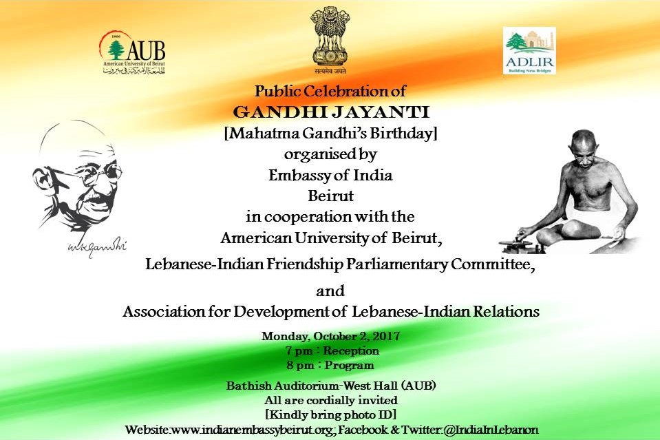 Public Celebration Of Gandhi Jayanti (Mahatma Gandhi's Birthday)on 2 Oct 2017 At 7 Pm. All Are Cordially Welcome