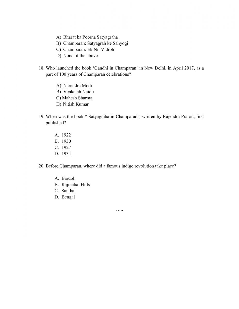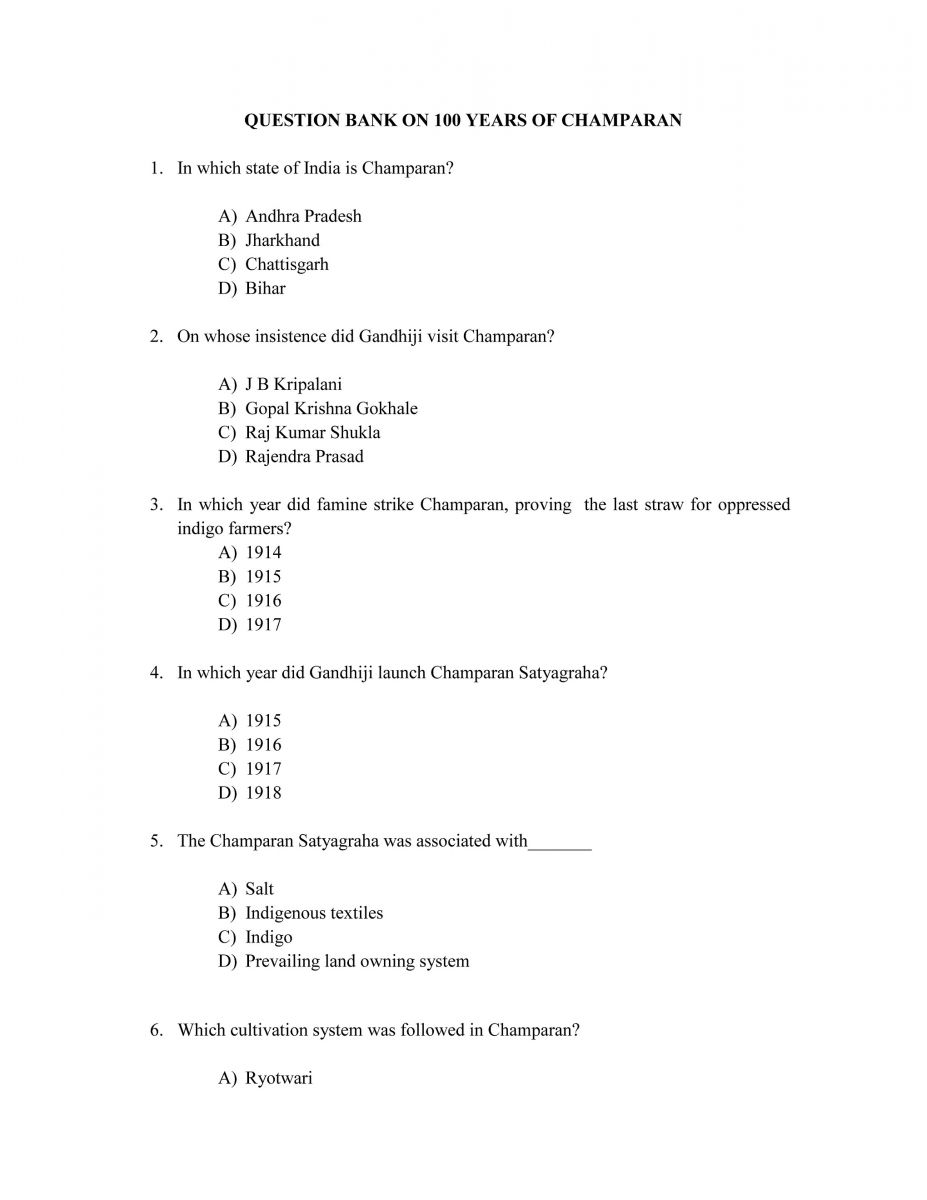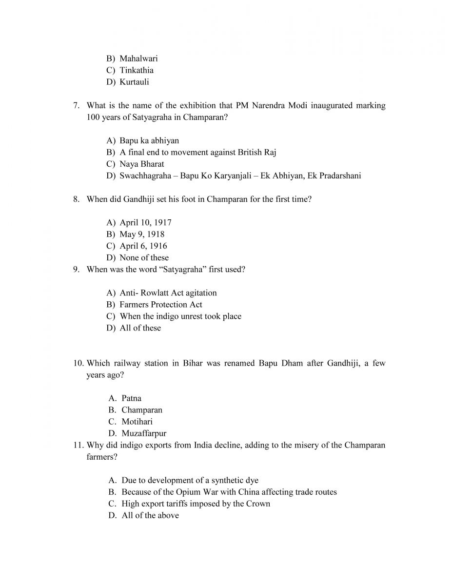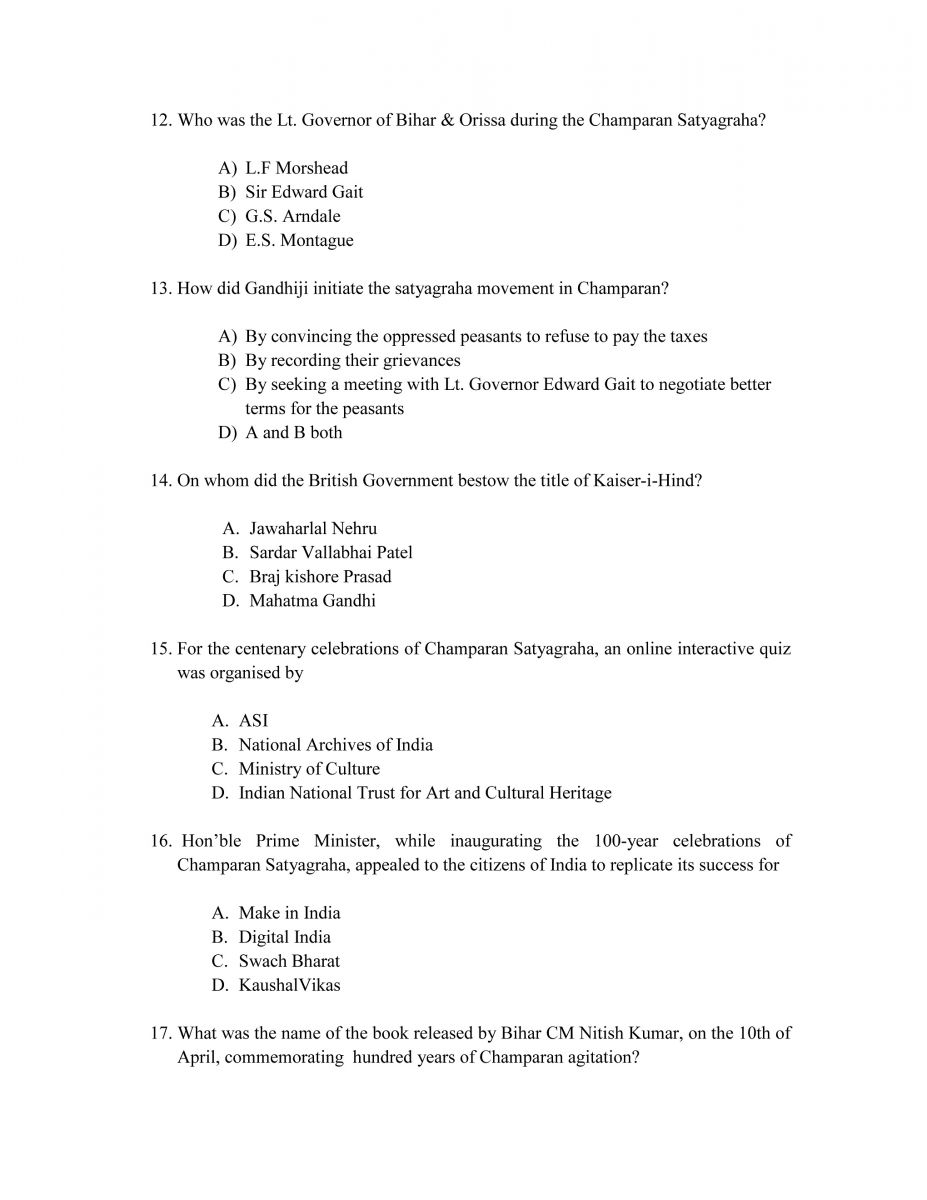 Quiz On 100 Years Of Champaran Satyagraha