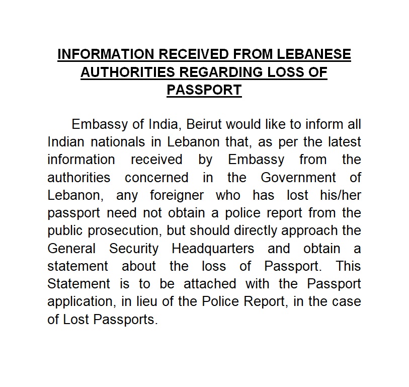 Information Received From Lebanese Authorities Regarding Loss Of Passport