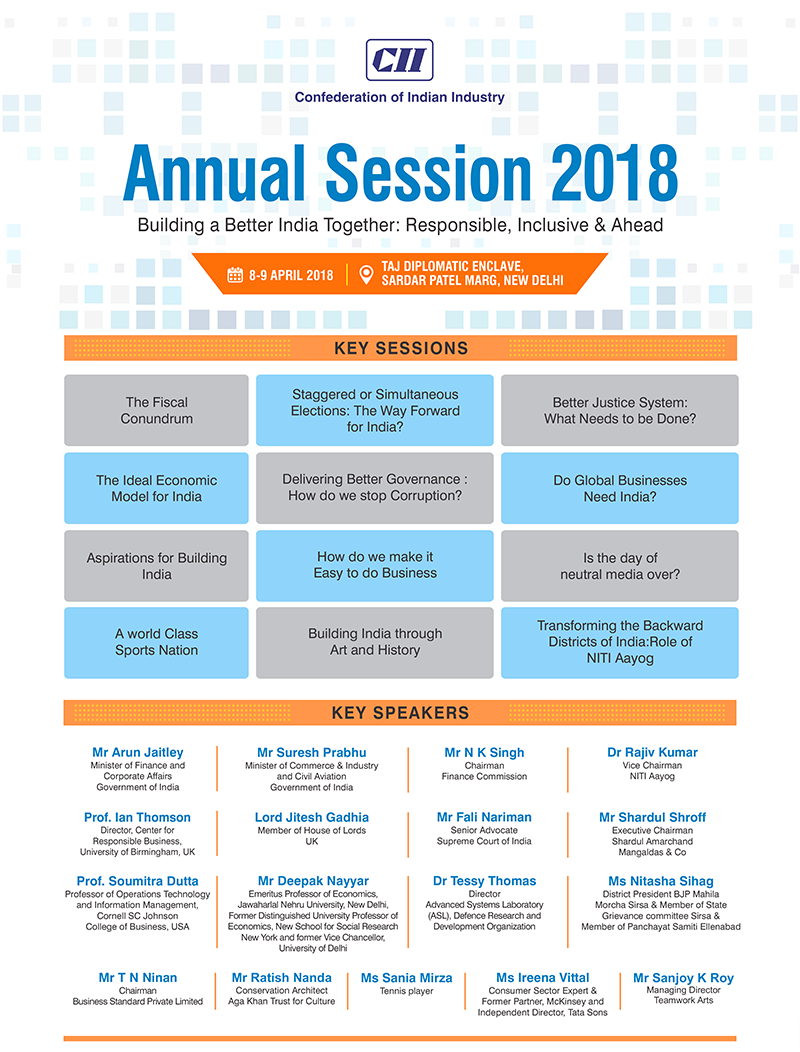 CII Annual Session 2018 : 8-9 April 2018 : Taj Diplomatic Enclave, New Delhi