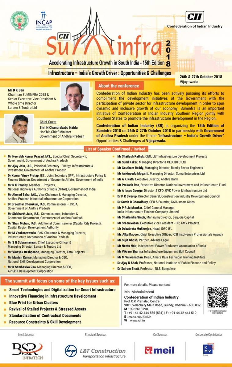 150th Edition - Suminfra 2018: Accelerating Infrastructure Growth In South India: 26th & 27th October 2018