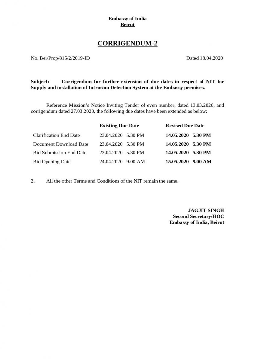Corrigendum 2 - Notice Inviting Tender For Intrusion Detection System
