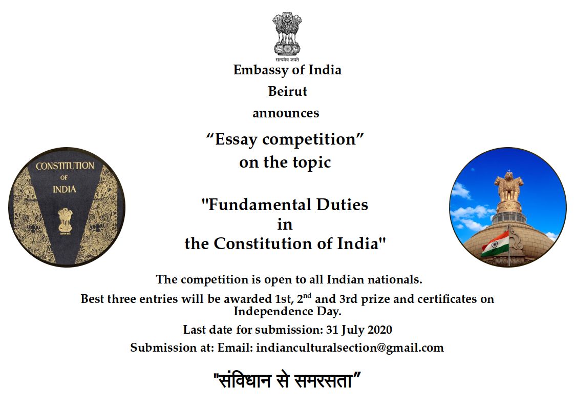 Essay Competition On The Topic - "Fundamental Duties In The Constitution Of India"