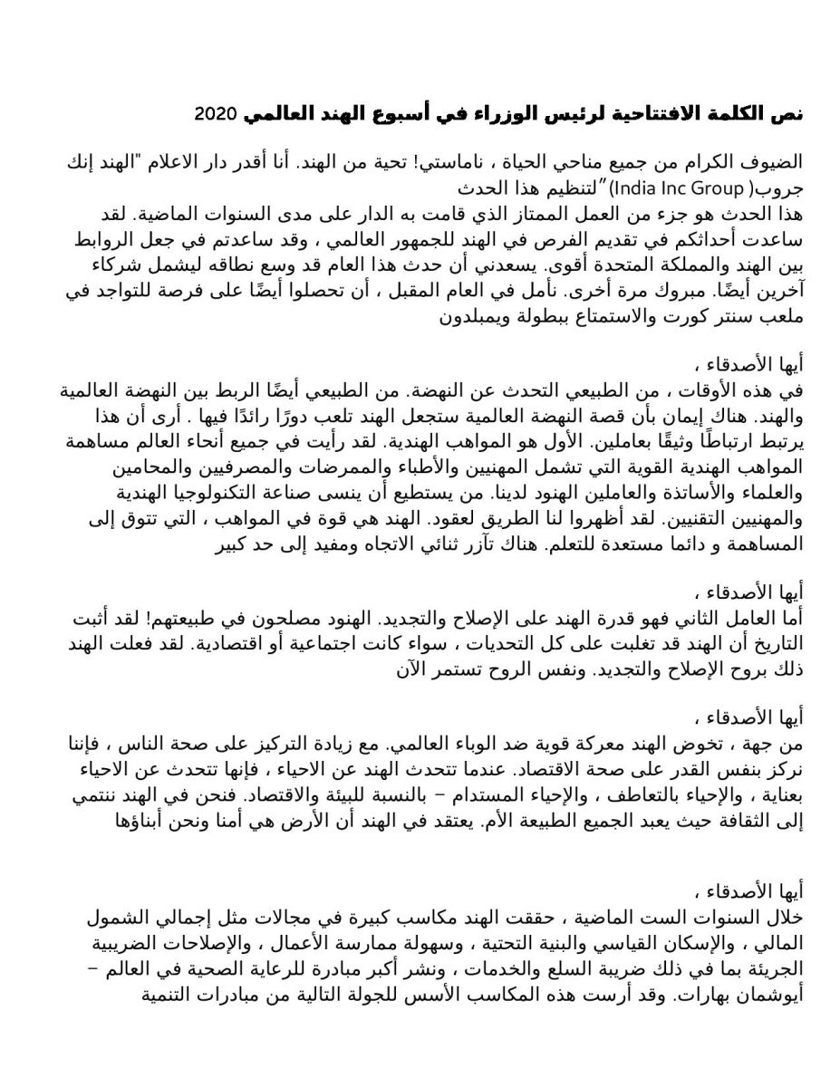 Text Of Hon'ble PM’s Inaugural Address At India Global Week 2020