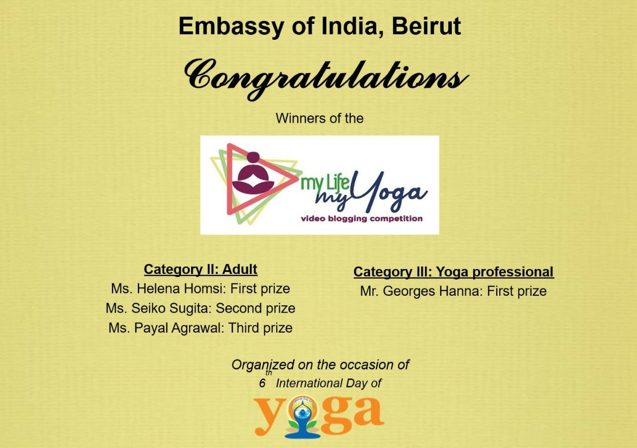 Congratulations to the winners of #MyLifeMyYoga contest from Lebanon organised on the occasion of the 6th International Day of Yoga 2020.