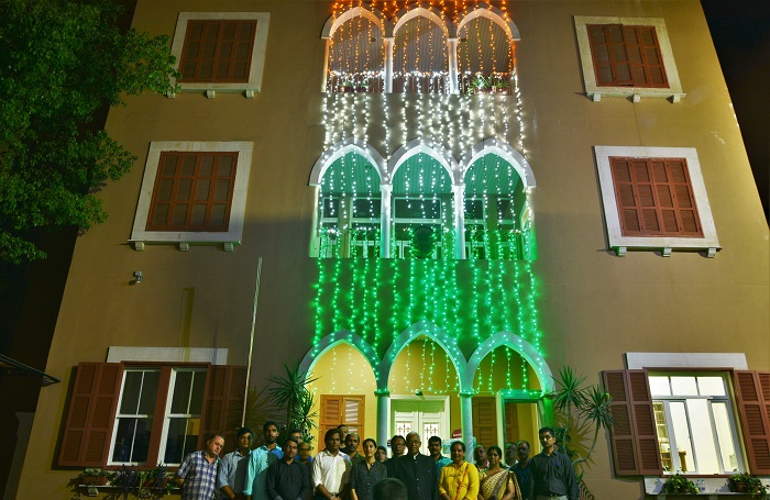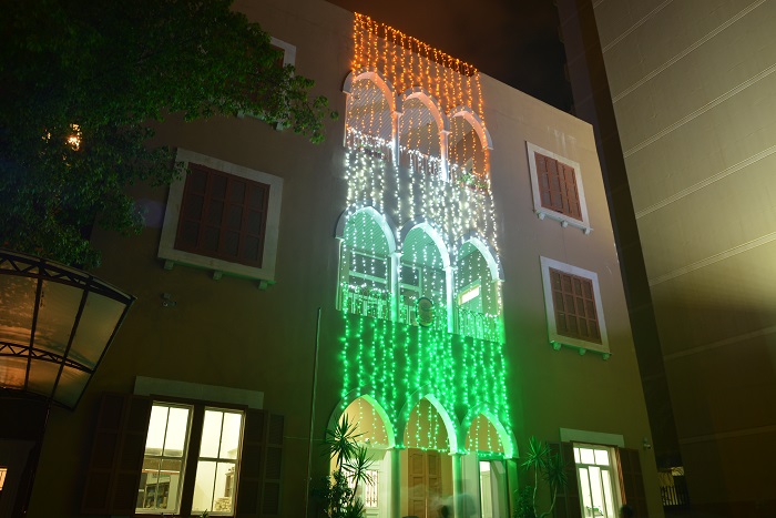Embassy of India, Beirut illuminated in the colours of National Flag on 71st Independence Day of India.