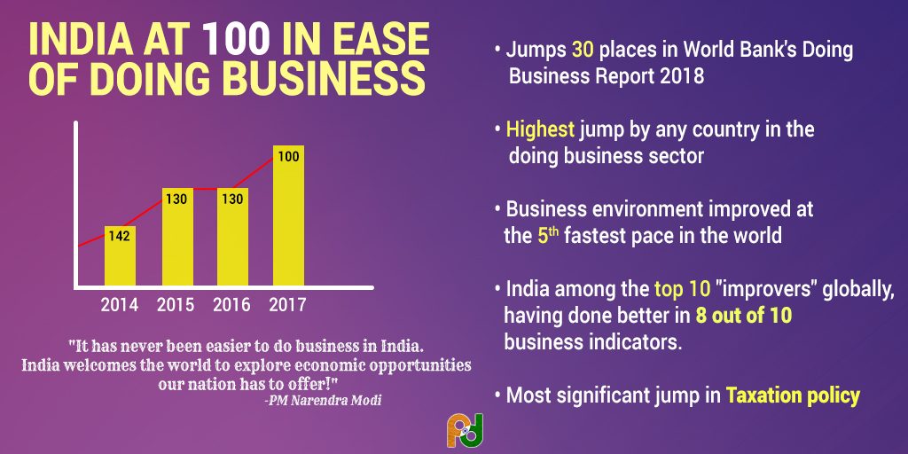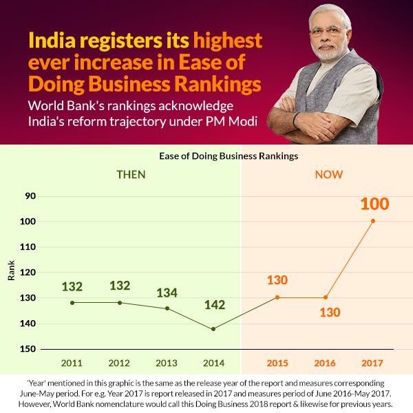 India registers its highest ever increase in Ease of Doing Business Rankings