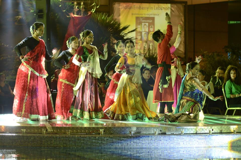 September 06, 2014The Embassy of India organized three fusion dance performances entitled “Dancing Divas”, featuring the renowned dance group Gurukul Dubai. On 4th September, the performance was organized in collaboration with the Mayor of Saida, in the Saida Municipality’s auditorium, in front of 250 people. The performance on 6th September was organized in collaboration with the Union of Tyre Municipalities in the city of Tyre. On 5th September, the “Dancing Divas” was performed in Le Royal Hotel, Beirut, at a gala dinner by the poolside to mark the inauguration of Indian Food Week.