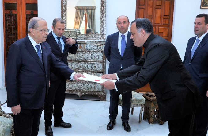 Ambassador Dr. Suhel Ajaz Khan presented his credentials to H. E. Michel Aoun, President of the Republic of Lebanon, at the Beiteddine Palace on 27 August 2019.