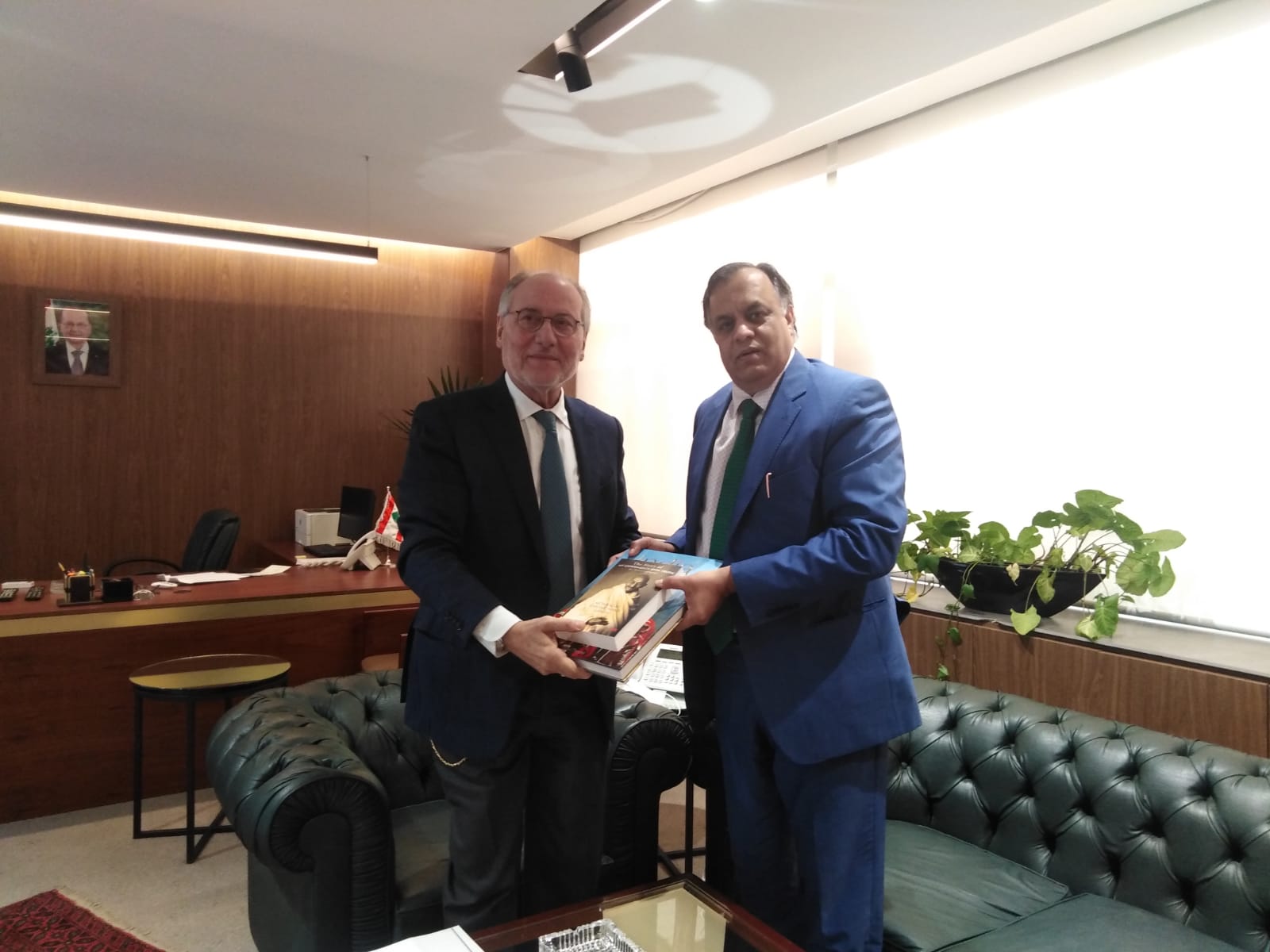 March 10, 2022Amb Dr Suhel Khan met with Minister of Education & Higher Education & Acting Minister of Information H.E. Dr Abbas Al-Halabi on March 10, 2022. They discussed various issues of interests including news exchange/teachers trainings/mutual recognition of high school certificates/ITEC/Yoga etc.