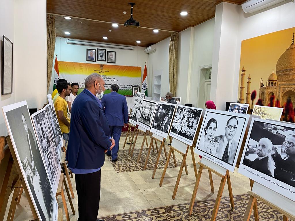 On this occasion, Ambassador Dr. Suhel Ajaz Khan inaugurated a ‘Photo Exhibition’ of some important photographs of Dr. Bhim Rao Ambedkar by lighting mayur lamp. The exhibition will remain open for general public till 19th April 2022. A number of Indian Community members and Embassy Staff along with their family members visited the exhibition and enriched their awareness about life of Baba Saheb.