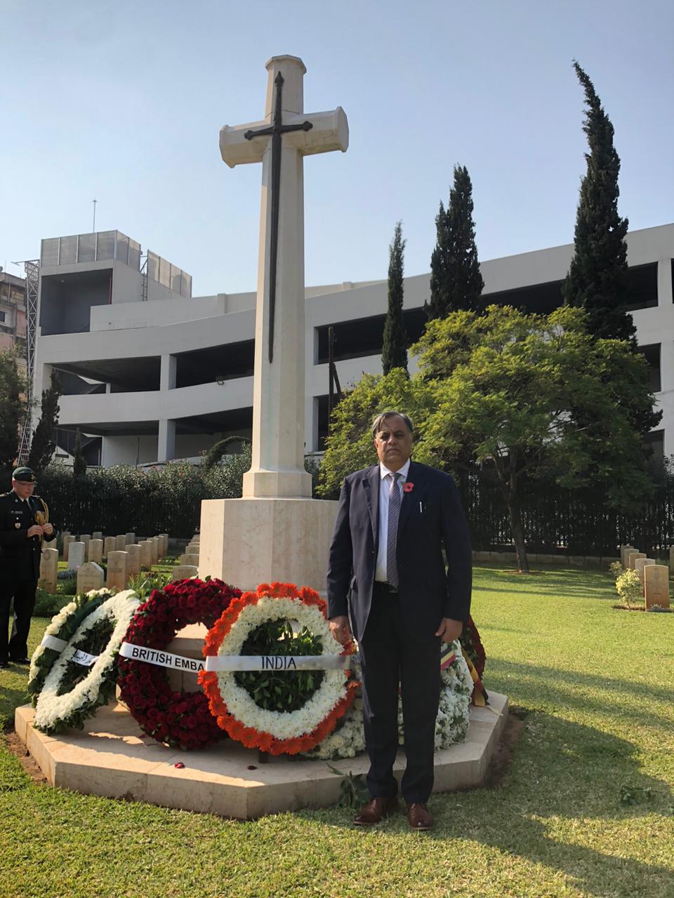 On November 12, Ambassador Dr Suhel Khan joined others in offering respects to the fallen soldiers on Remembrance Day  at the Commonwealth War Cemetery on November 12, 2022 at Beirut. More than 400 Indian soldiers who lost their lives during WW 1 and WW 2 are laid to rest in various cemeteries in Lebanon.