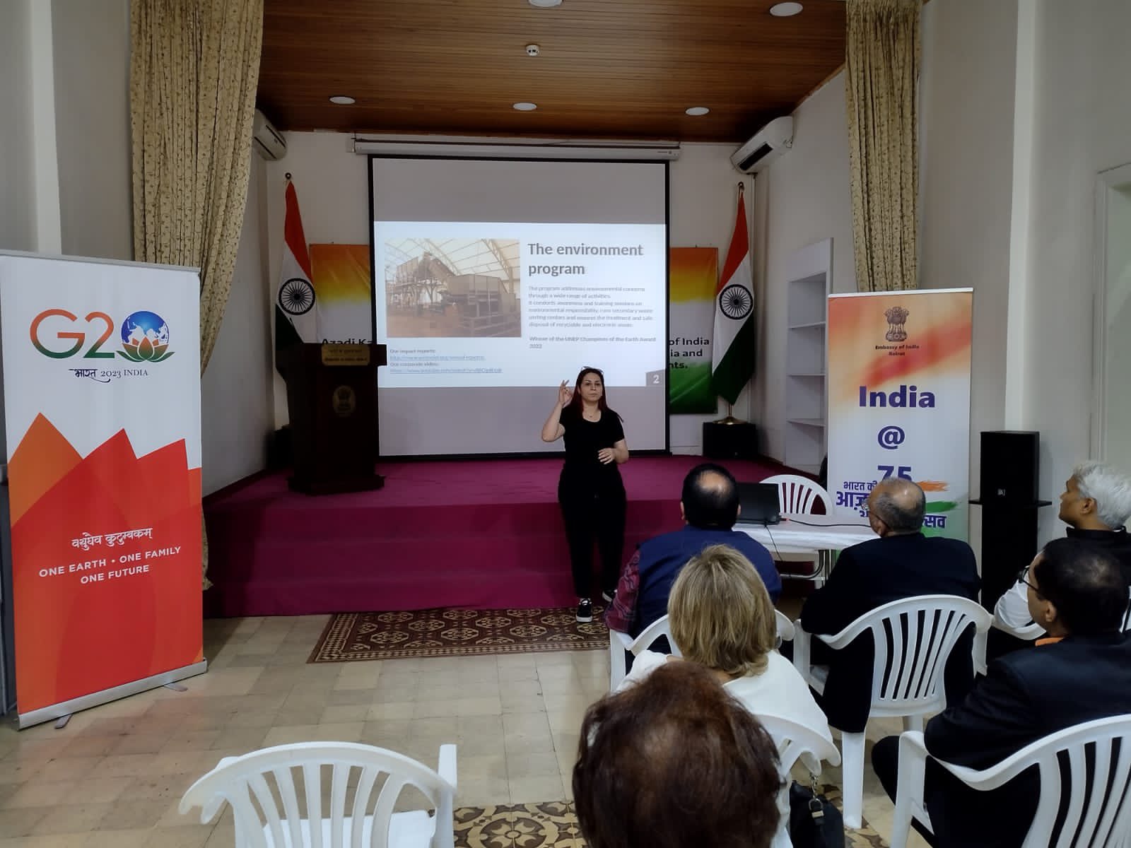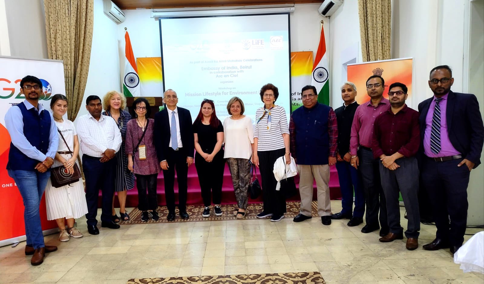 June 07, 2023Embassy of India, Beirut in collaboration with the Lebanese NGO Arc en Ciel organized a Workshop on Mission LiFE today. Ms. Lama Nehme from Arc en Ciel gave a presentation on environment friendly habits like save energy, save water and about waste management.
