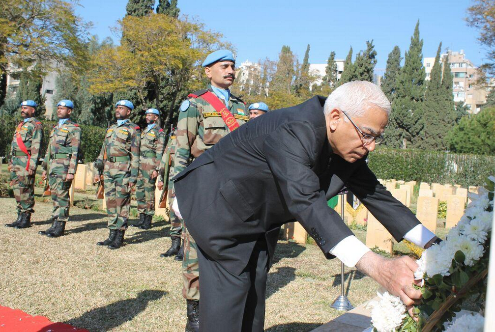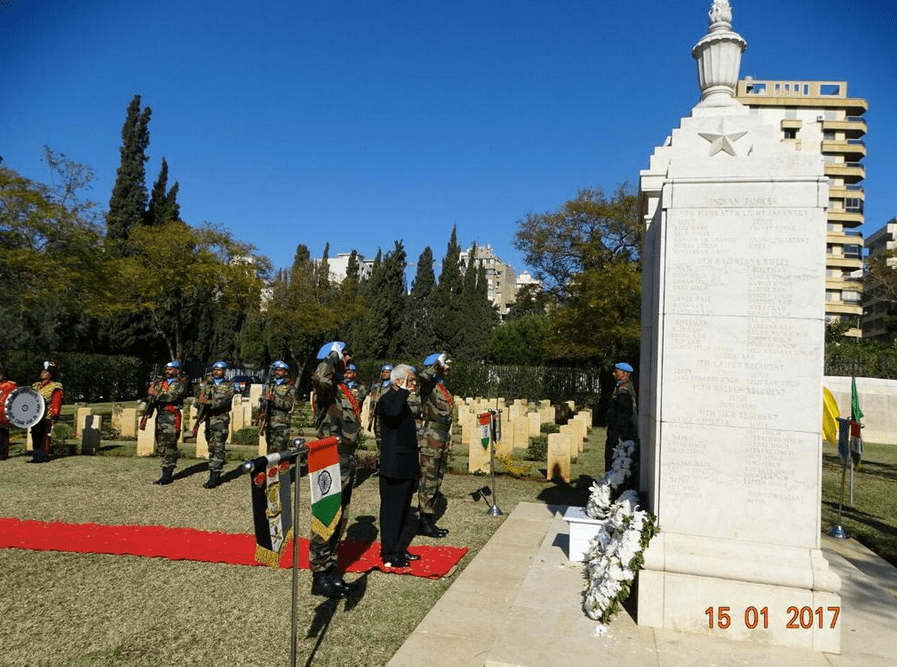 Ambassador-designate with DFC, UNIFIL and Indbatt at Wreath Laying ceremony at C'Wealth War Memorial in Beirut on Indian Army Day.
