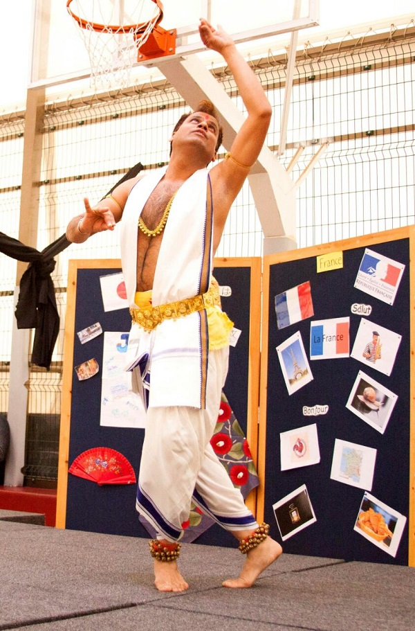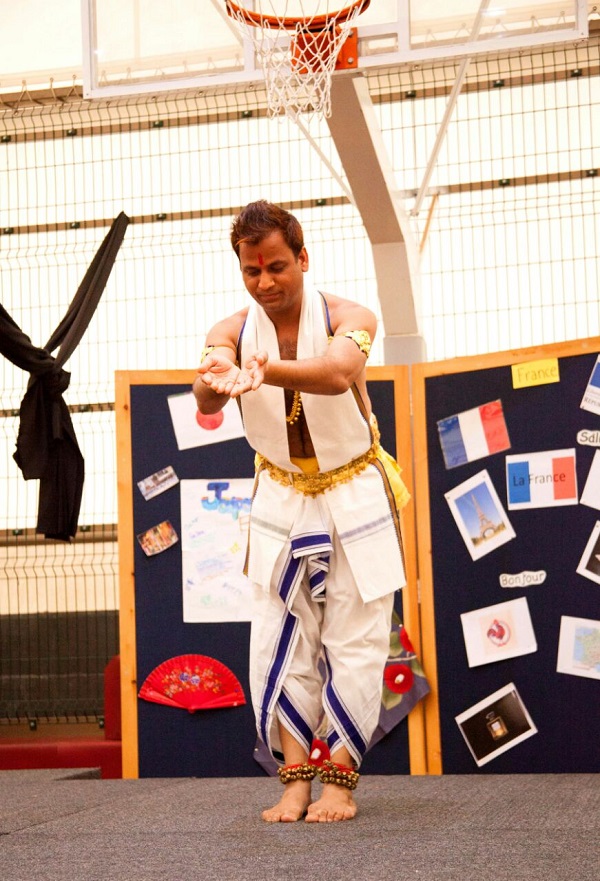 Indian dance demonstration and performance by Ajay Singh, dance teacher from the Embassy, at "Mother Tongue Celebration" in Wellspring Learning Community.